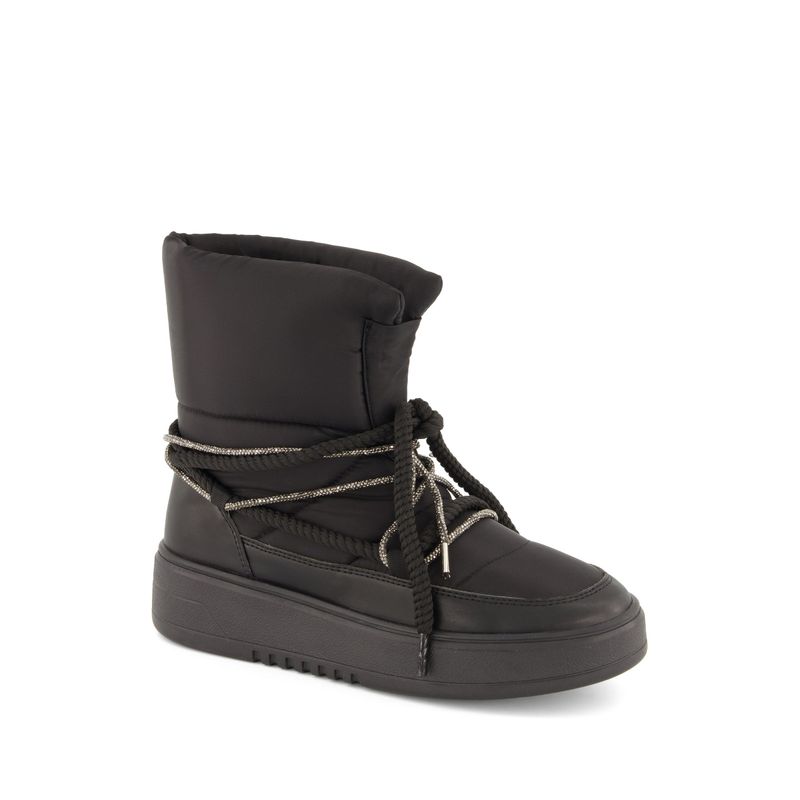 Sé la envidia de todos en esta temporada con esta bota acompañada de pedrería en sus agujetas ajustables. Su diseño único te hará lucir perfecta y cómoda a donde sea que vayas.