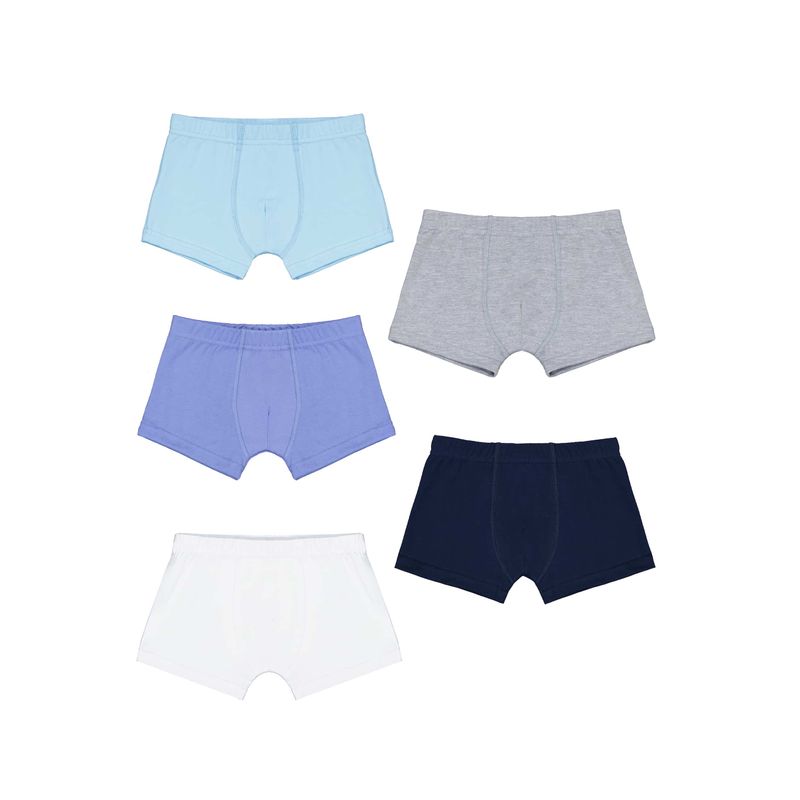 Cinco pack de bóxers para niño en colores básicos, confeccionados con materiales suaves y elásticos que garantizan comodidad y libertad de movimiento. Su corte clásico y ajustado permite un ajuste seguro sin incomodidad, mientras que su confección resistente asegura durabilidad y uso prolongado. Una opción práctica y esencial para el guardarropa infantil.