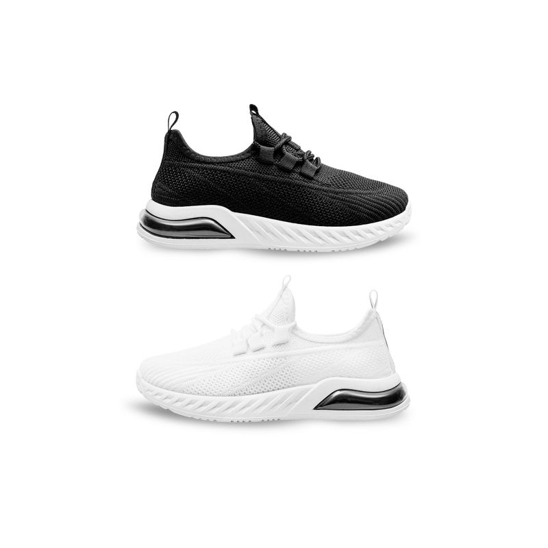 Dos es mejor que uno. Dúo pack con diseño moderno de tejido knit y suela gruesa con sección transparente para mayor confort. Ideales para uso diario y actividades escolares.
