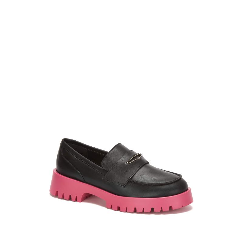 Si quieres llamar la atención con tu calzado, este loafer con acento de color en la suela, aplicación en el antifaz es la elección perfecta.