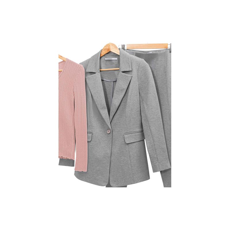 El saco Andrea para mujer en color gris es una prenda sofisticada y elegante, perfecta para ocasiones formales o para el día de oficina. Con un diseño largo, este saco ofrece una silueta favorecedora que aporta un toque de distinción. El cuello clásico y las mangas largas le dan un acabado pulido y atemporal, mientras que el cruce en botón al frente agrega un detalle funcional y estilizado. Confeccionado en materiales de alta calidad, este saco garantiza comodidad y durabilidad, convirtiéndolo en una pieza versátil que puede ser combinado con pantalones, faldas o vestidos. Ideal para quienes buscan un look refinado y profesional.