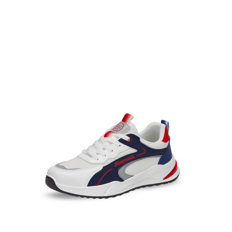 Este sneaker para hombre de Aéropostale destaca por su diseño en contraste de materiales y el grabado distintivo de la marca. En tonos blanco y azul marino, ofrece un estilo moderno y versátil que complementará tu guardarropa. Además de su atractivo estético, garantiza comodidad y durabilidad para el día a día. Con este calzado, lucirás elegante y a la moda en cualquier ocasión, convirtiéndolo en una opción perfecta para tus outfits casuales y deportivos.